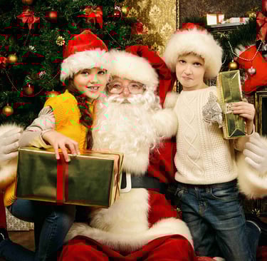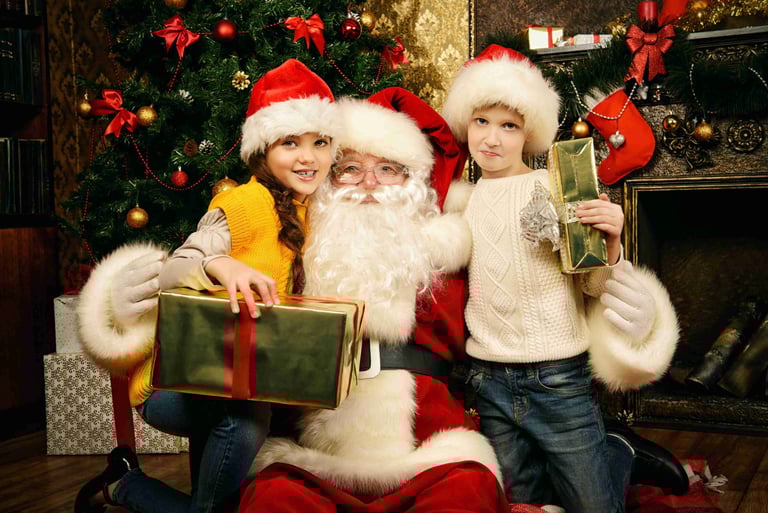Santa surprise appearances, photos, small magic tricks, present-giving & warm moments.